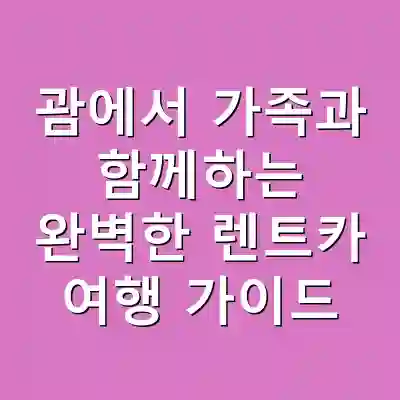괌에서 가족과 함께하는 렌트카 여행은 소중한 추억을 만들 수 있는 훌륭한 선택입니다. 렌트카를 이용한 여행의 장점과 예약 방법, 여행 중 주의사항을 잘 숙지하신다면 더욱 알찬 여행이 될 것입니다. 괌의 아름다운 자연과 명소를 가족과 함께 즐겨보세요!