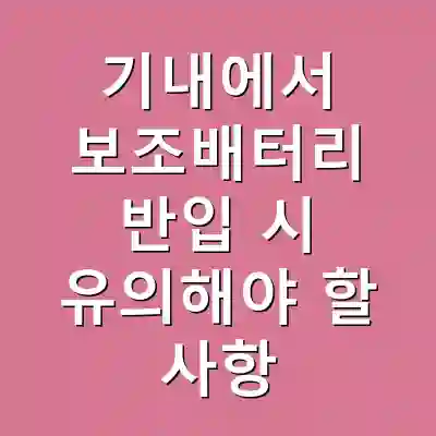 기내에서의 보조배터리 반입 시 주의사항은 외관 점검과 용량 확인이 중요합니다. 배터리는 반드시 기내에 소지해야 하며, 상태가 양호해야 반입이 가능합니다. 사전 승인이 필요한 경우도 있으므로, 각 항공사의 규정을 사전에 숙지하는 것이 필수입니다.