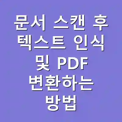 문서 스캔 후 텍스트 인식 및 PDF 변환을 통해 효율적으로 문서 작업을 수행할 수 있습니다. OCR 기술을 활용하면 스캔된 문서를 신속하게 디지털화하고, 편집 및 검색이 용이해집니다. 정확한 스캔 환경을 조성하는 것이 성공적인 OCR 작업의 핵심입니다.