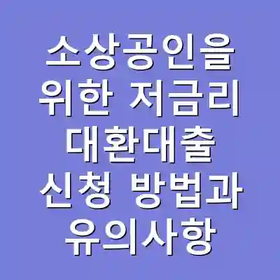 소상공인 저금리 대환대출은 기존의 높은 금리를 저금리로 전환할 수 있는 금융 프로그램입니다. 신청 조건을 명확히 이해하고, 신중하게 신청 절차를 진행하는 것이 중요합니다. 이 제도를 통해 소상공인들은 경영 부담을 줄이고 더 나은 사업 환경을 만들 수 있습니다.
