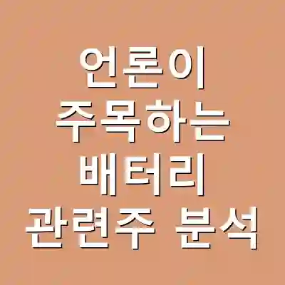 배터리 관련주는 현재 전기차 및 ESS 시장의 급성장으로 인해 높은 관심을 받고 있습니다. 투자 시에는 철저한 정보 분석과 포트폴리오 다각화가 필수적입니다. 배터리 산업의 기술 발전은 향후 시장의 성장을 더욱 촉진할 것으로 예상됩니다.