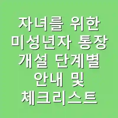 자녀를 위한 미성년자 통장 개설은 필수 서류와 절차를 잘 이해하고 준비하는 것이 중요합니다. 통장을 통해 자녀는 재정 관리의 기초를 배우게 되며, 이는 향후 경제적 자립으로 이어집니다. 이 과정에서 필요한 정보와 주의사항을 충분히 숙지하여 보다 원활한 진행이 가능하도록 하십시오.