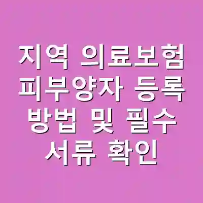 지역 의료보험 피부양자 등록은 한국의 건강보험 제도에서 매우 중요한 요소입니다. 피부양자로 등록하게 되면 본인의 건강보험료 부담을 줄일 수 있으며, 자영업자나 퇴직한 부모님이 계신 경우에 특히 중요합니다. 이 글에서는 피부양자 등록 방법과 필요 서류에 대해 상세히 설명합니다. 이 정보를 통해 피부양자 등록의 절차를 이해하고, 필요한 서류를 미리 준비할 수 있는 유용한 팁을 제공받을 수 있습니다.